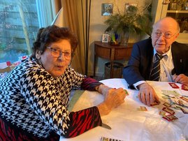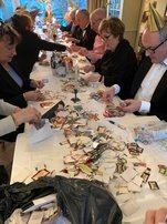 Na de lusten was het tijd voor de – zoete – lasten: het tellen van de Douwe Egberts-zegels en oude munten die men tegen het einde van het jaar in de daarvoor bestemde dozen bij diverse Amsterdamse OBA’s had kunnen deponeren. Een routineklusje, dat ruimte liet voor veel geginnegap, waarbij men elkaar over en weer stapels zegels toeschoof- of afpakte, en menigeen telkens opnieuw moest beginnen met tellen. Dat de opbrengst dit jaar minder was dan vorig jaar mocht de pret niet drukken, hoewel wij natuurlijk voor het goede doel - de Voedselbank – ieder jaar hopen op zoveel mogelijk Douwe Egberts-punten. Bijzonder sfeer-verhogend was het draaien van smartlappen met een hoog André Hazes-gehalte, waarop luid mee geschald werd.